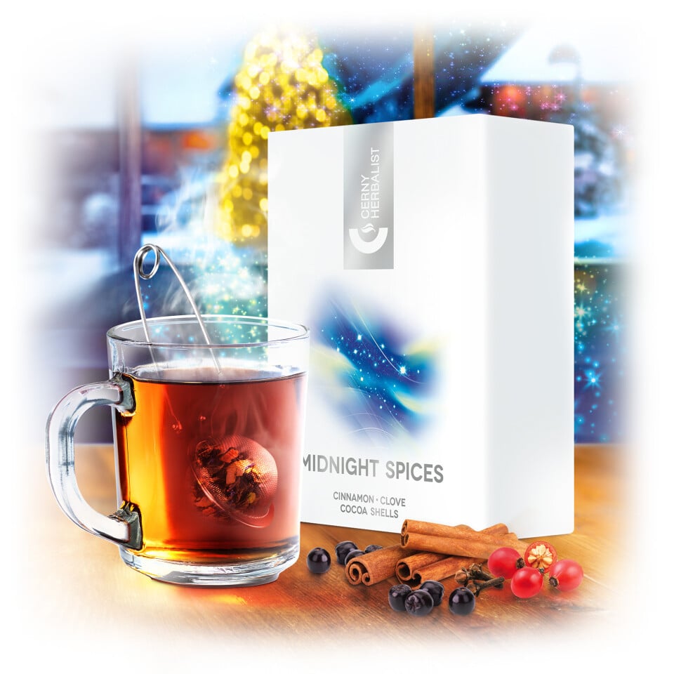 Aromatizovaná čajová zmes POLNOČNÉ KORENIE vás zahalí do tepla domova, zatiaľ čo za oknami žiaria svetielka ospalého dedinského večera a noc spomaľuje svoj rytmus. V dlaniach držíte horúci šálik, kedy vôňa škorice a klinčeka obklopuje pokojnú večernú atmosféru. Sladké jablko dodáva jemnosť, šípka sviežosť a arónia plnú ovocnú chuť. Fenikel prináša jemné bylinné tóny a kakaové šupky zamatovú hĺbku s teplým nádychom.